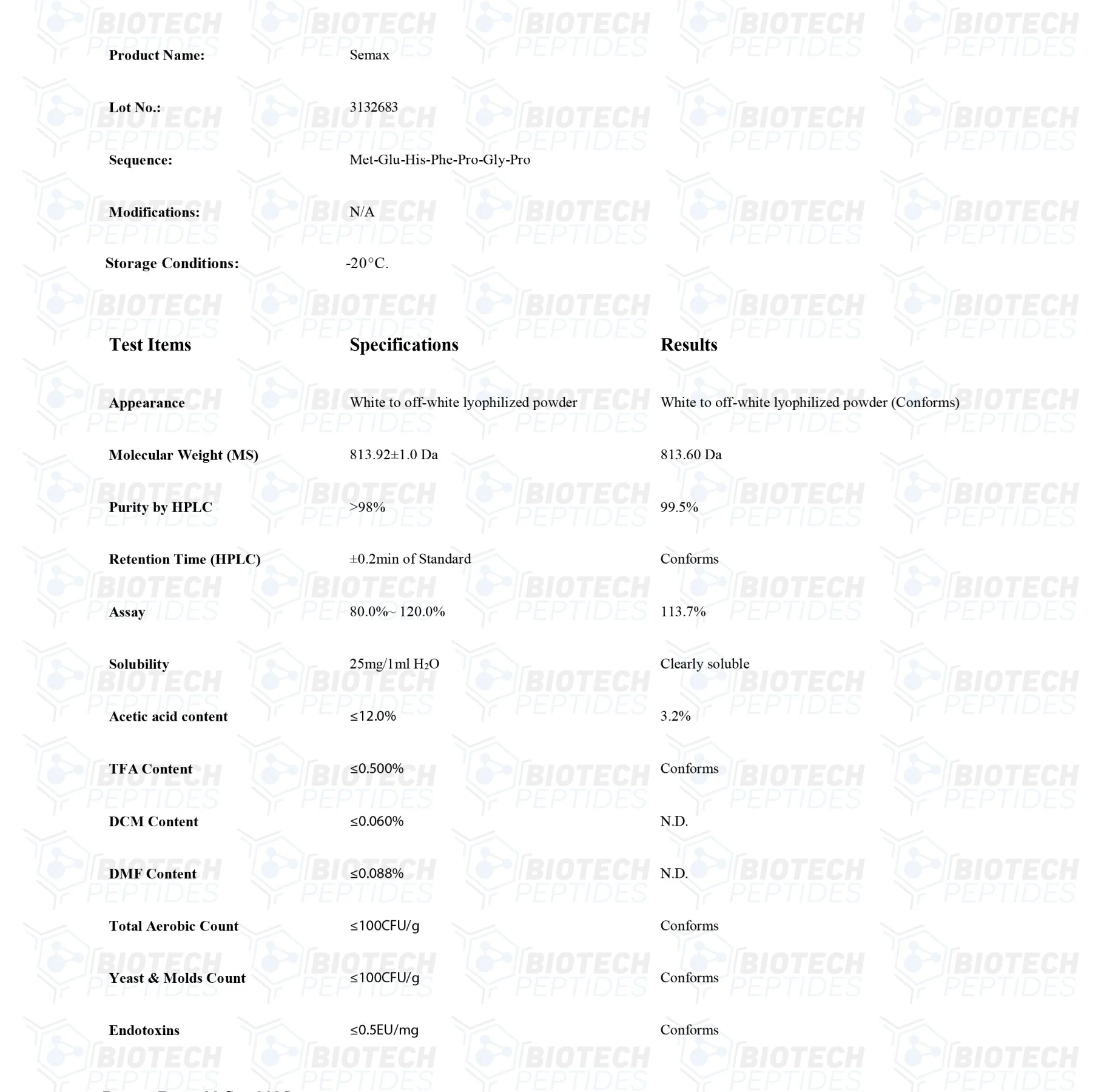 Semax is a synthetic analog of adrenocorticotropic hormone (ACTH) comprising the amino acids 4 through 10 of ACTH. Semax has primarily been implicated in research on cognitive impairment and stroke. The peptide has also been studied closely within the context of dementia and certain inflammations of the optic nerve. Researchers posit that the peptide may exert neurotrophic action, suggesting that the peptide may act to increase the production of brain-derived neurotrophic factor (BDNF) in the central nervous system, with potential consequences in serotonin and dopamine release. Some researchers also suggest that Semax may interact with serotonin and enkephalin levels in the central nervous system.