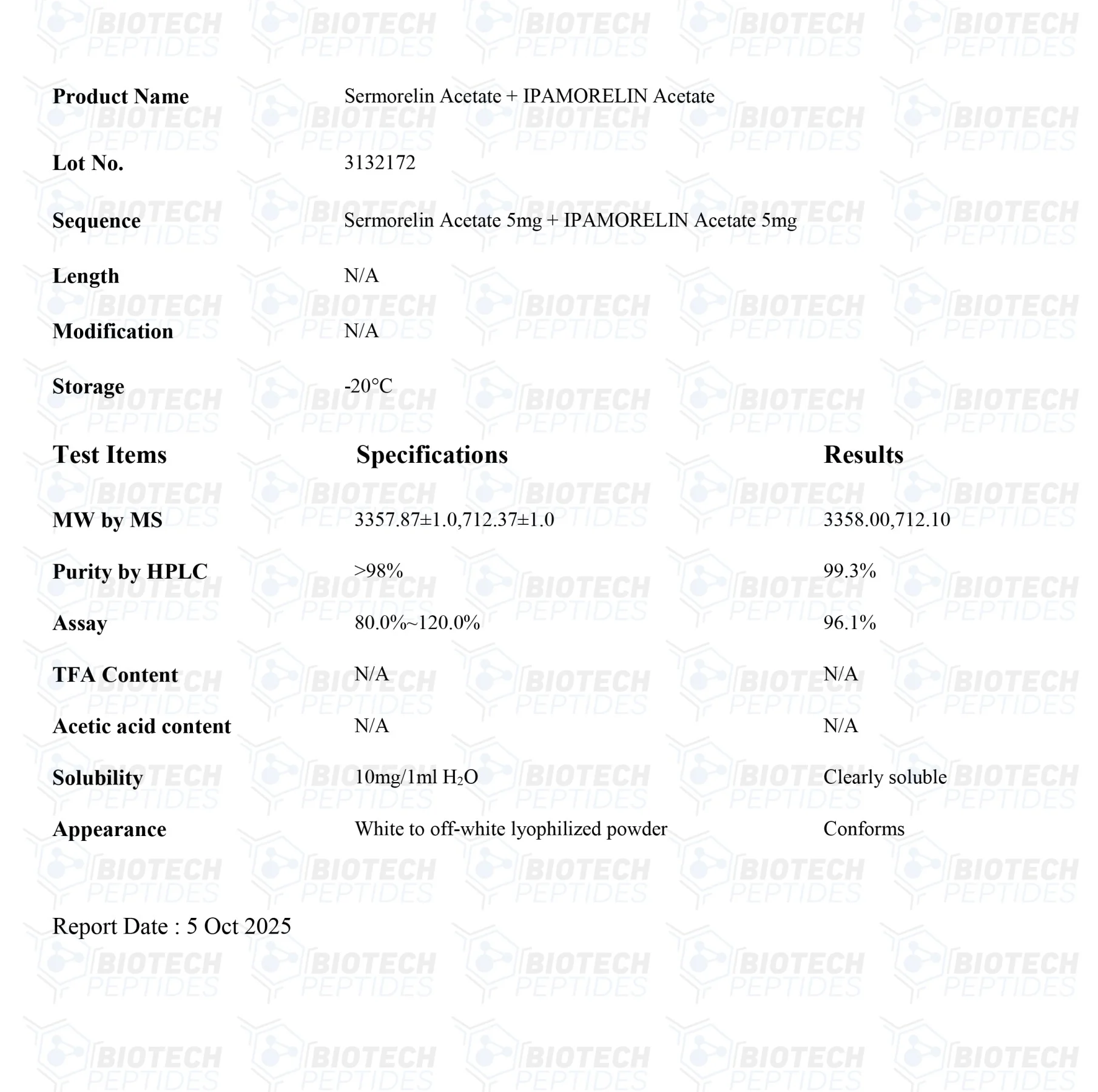 Sermorelin Specifications