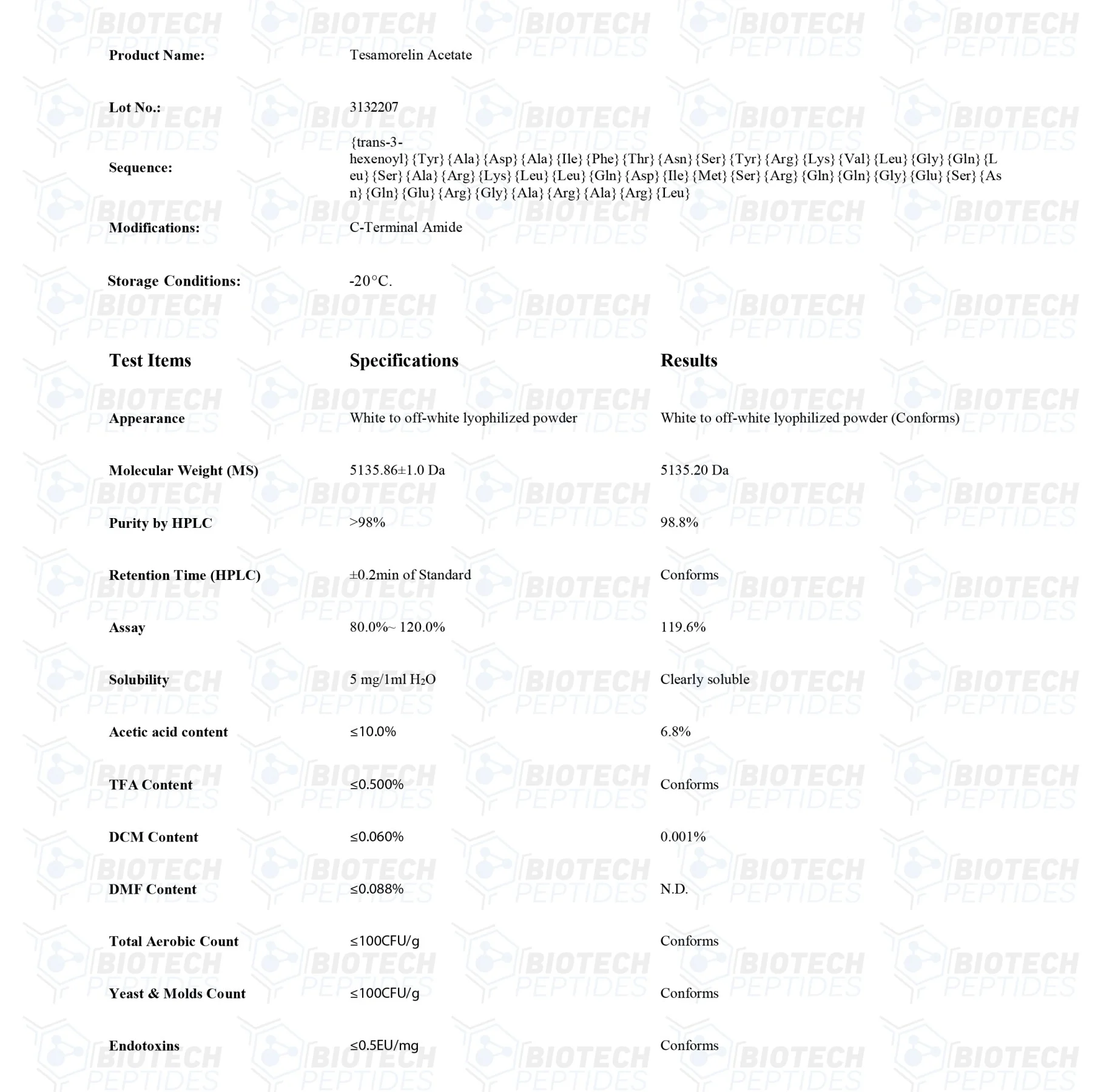 Tesamorelin is a chemically altered growth hormone-releasing hormone (GHRH) analog, that similar to the original is made of 44 amino acids. This peptide is a trans-3-hexanoic acid version of natural GHRH. The trans-3-hexanoic acid group is added to the N-terminus, while the C-terminus is amidated and acetylated. Tesamorelin appears to mediate the positive influence of GHRH and other GHRH analogs such as GRF (1-29), CJC-1295, and Sermorelin. The trans-3-hexanoic acid modification may increase its stability and half-life. Both Tesamorelin and CJC-1295 appear to maintain the physiological activity of GHRH, without disrupting the physiological rhythm of GH release.